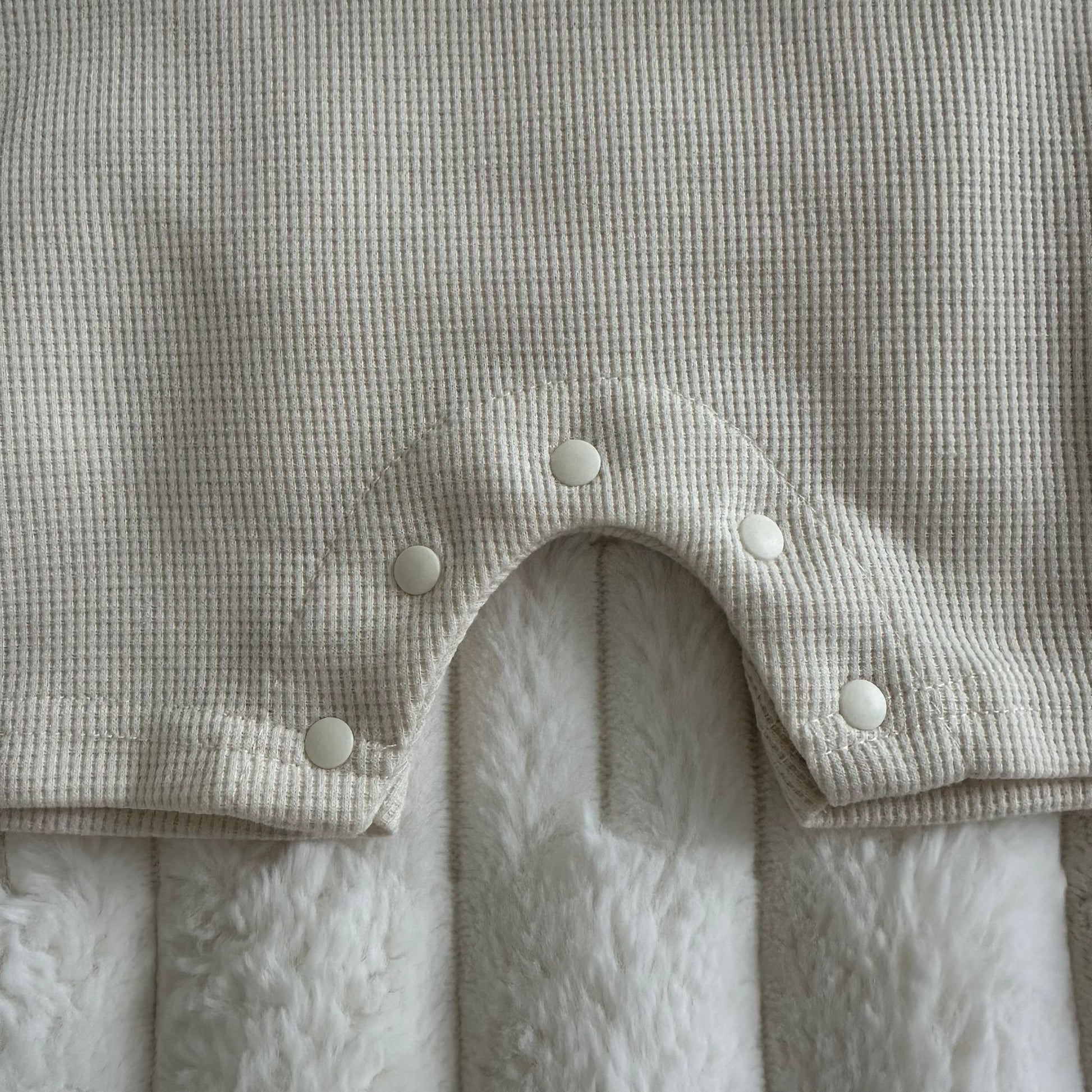 Ensemble « Douceur d’ourson » Barboteuse courte & bonnet (3-6 mois) Beige