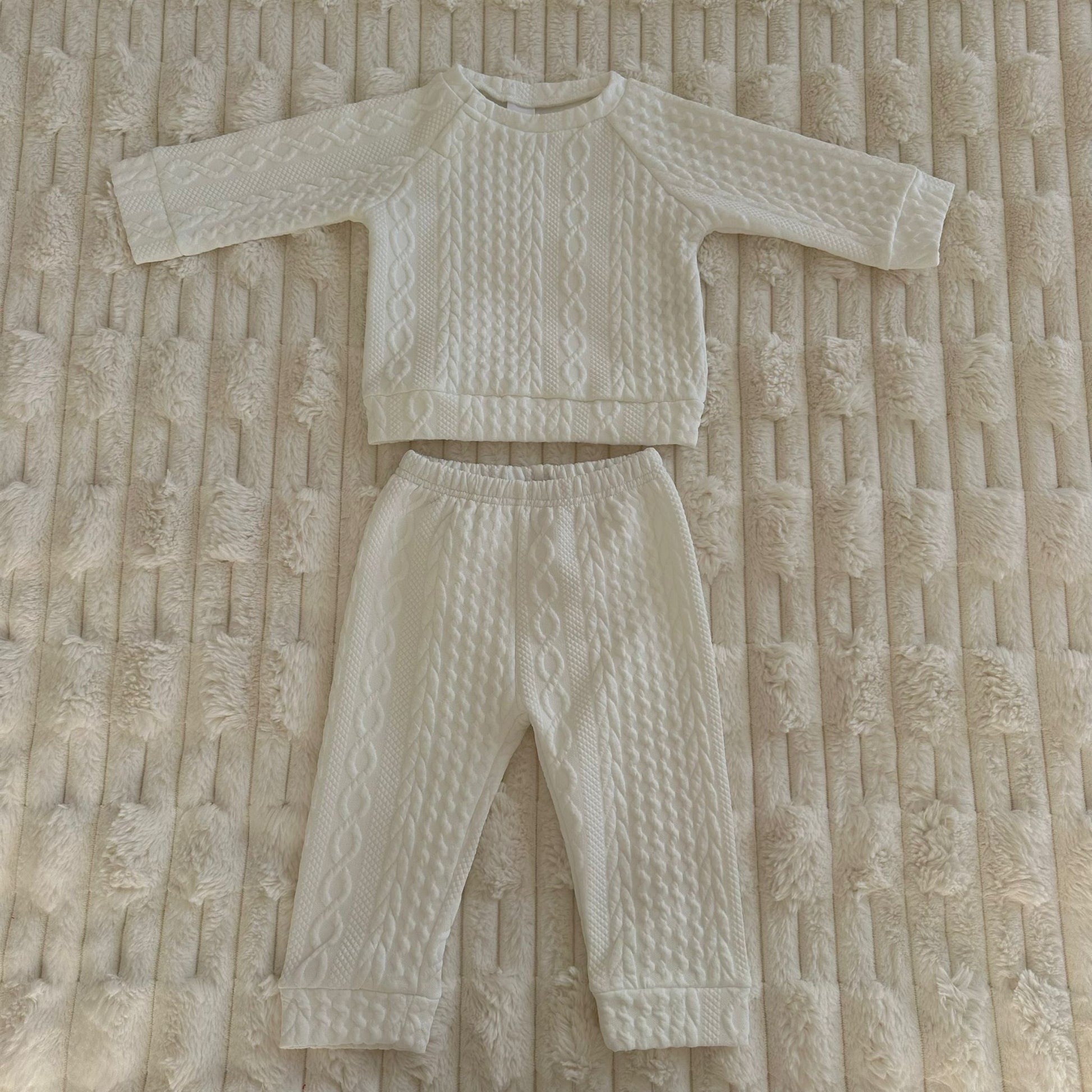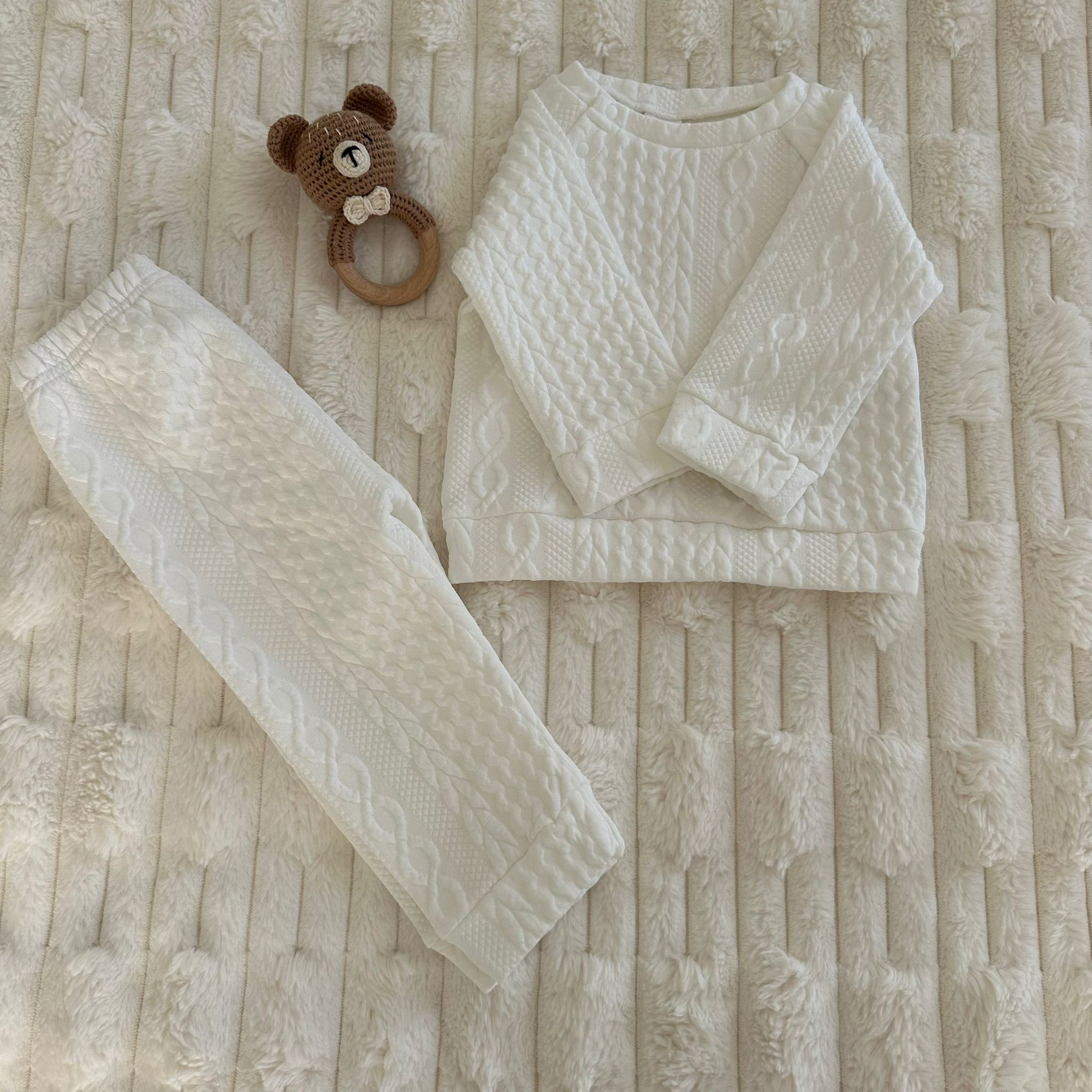Composé d’un pull et d’un pantalon assorti, il enveloppe bébé de douceur et de chaleur, idéal pour la saison automne-hiver.