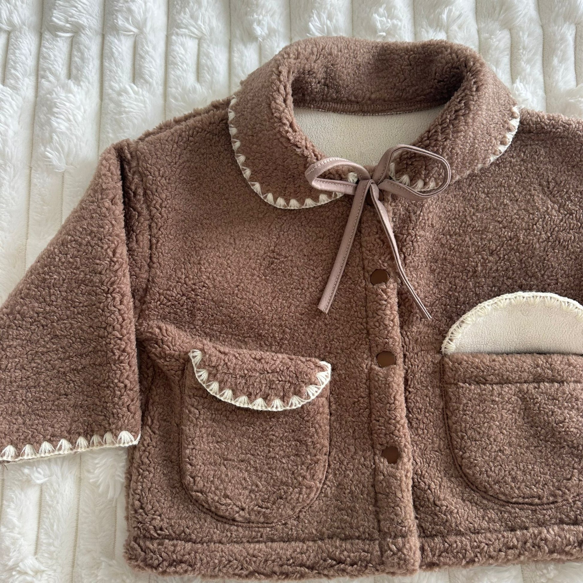 Ce manteau en polaire d’agneau est une pièce pleine de douceur pour accompagner les petites filles durant la saison automne-hiver.